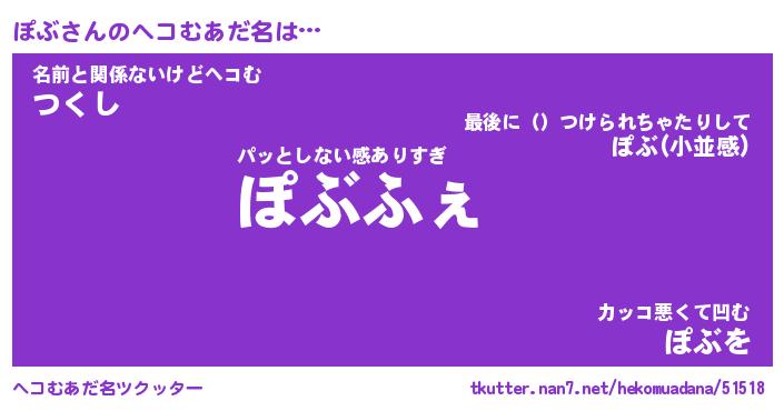| 2回繰り返すあだ名 | 『ぽぶぽぶ』『ぽぽぶぶ』『ぶんぶん』 |