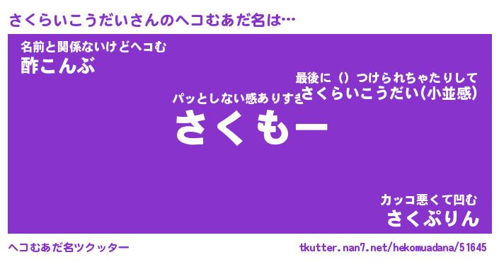 | 胡散臭い通販商品みたいなあだ名 | 『モテモテ間違いなし霊験あらたかなお札…その名も「さくらいこうだい」』 |