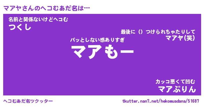 | 男性向けラノベタイトル風あだ名 | 『マアヤアートオンライン』 |