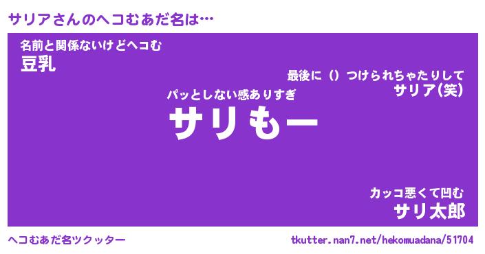 | 男性向けラノベタイトル風あだ名 | 『サリアの憂鬱』 |