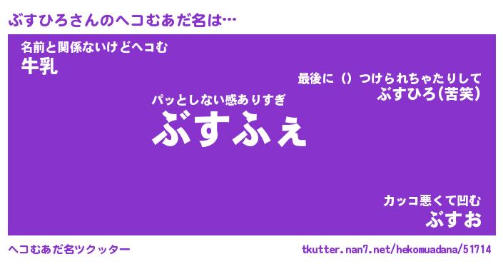 | 意味不明あだ名 | 『ペロリンぶすひろ』『永久保存ぶすひろ』 |