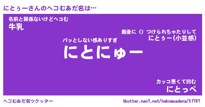| 男性向けラノベタイトル風あだ名 | 『にとぅーの憂鬱』 |