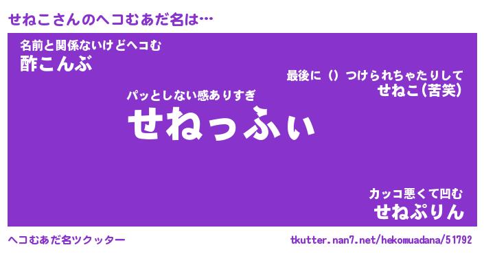 | 意味不明あだ名 | 『ペロリンせねこ』『せねこフォーエバー』 |