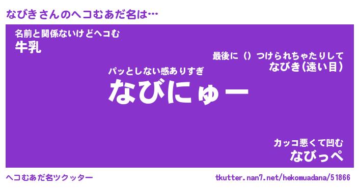 | 2回繰り返すあだ名 | 『なびなび』『ななびび』『ぐだぐだ』 |