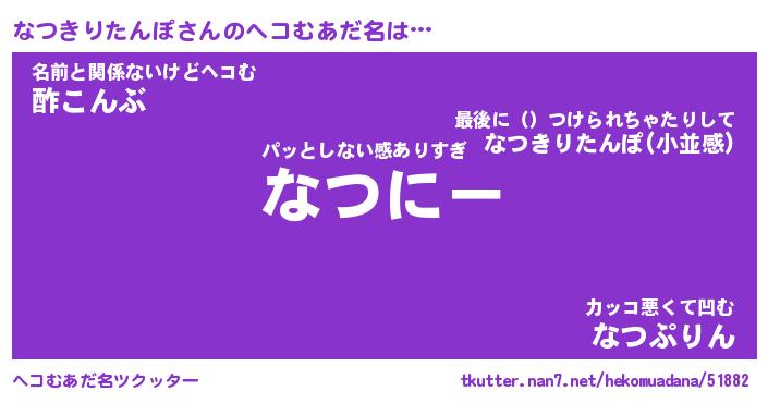 | 男性向けラノベタイトル風あだ名 | 『なつきりたんぽの憂鬱』 |