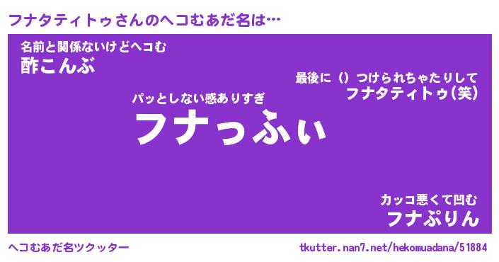 | 男性向けラノベタイトル風あだ名 | 『フナタティトゥの憂鬱』 |