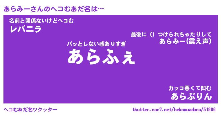 | 意味不明あだ名 | 『ペロリンあらみー』『永久保存あらみー』 |