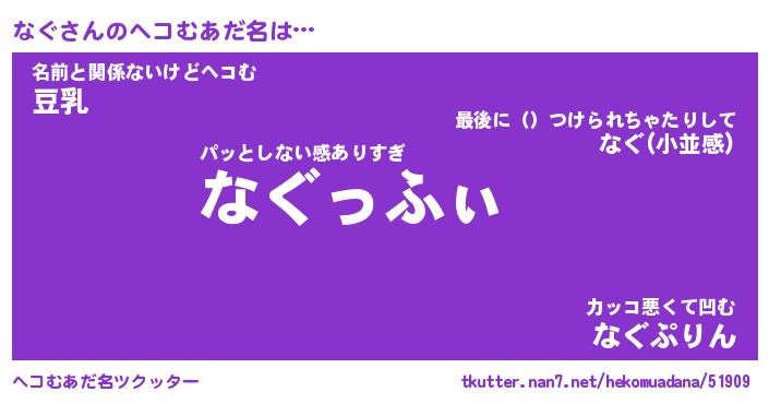 | 恥ずかしいあだ名 | 『プリティーなぐ』『なぐっちょ』 |