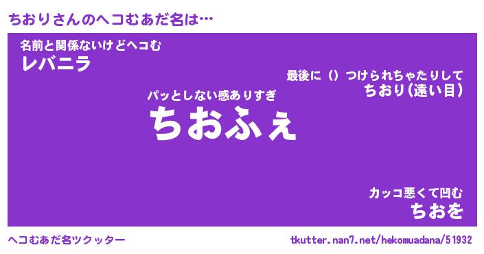 | 可愛いあだ名 | 『ちんちん』『ちおちー』 |