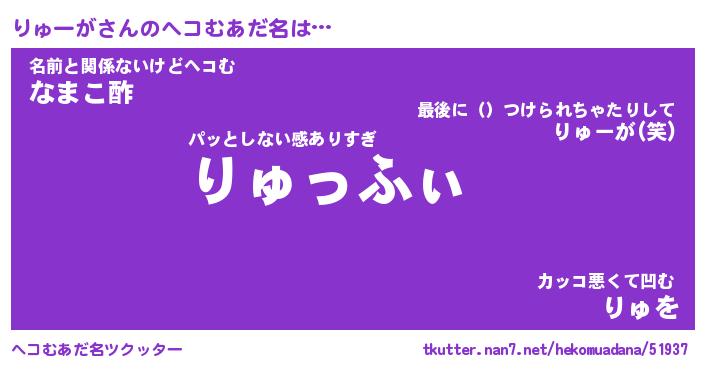 | 意味不明あだ名 | 『ペロリンりゅーが』『永久保存りゅーが』 |