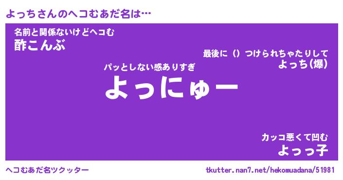| 意味不明あだ名 | 『ペロリンよっち』『よっちフォーエバー』 |