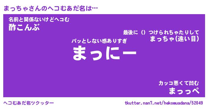 | 意味不明あだ名 | 『ペロリンまっちゃ』『永久保存まっちゃ』 |