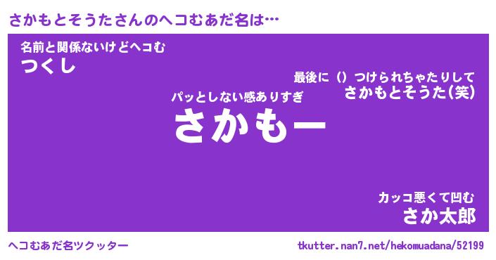 | 男性向けラノベタイトル風あだ名 | 『サカモトソウタアートオンライン』 |