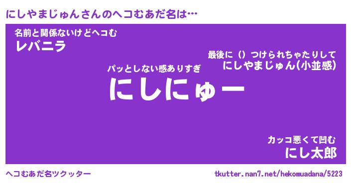 | ピコ太郎風あだ名 | 『ニコ史郎』『ピニ四郎』『ニシ二郎』 |