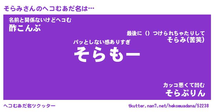 | 意味不明あだ名 | 『ペロリンそらみ』『そらみフォーエバー』 |