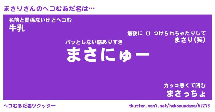 | 意味不明あだ名 | 『ペロリンまさり』『まさりフォーエバー』 |