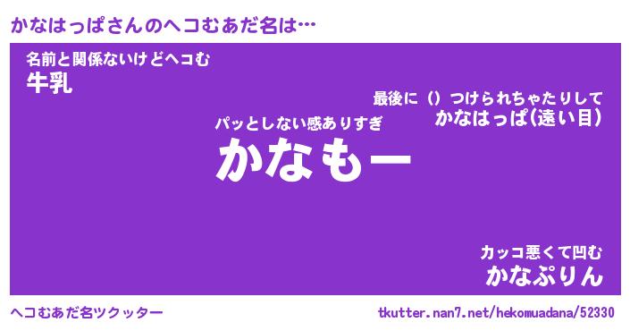 | 男性向けラノベタイトル風あだ名 | 『かなはっぱの憂鬱』 |