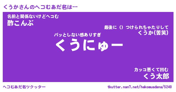 | 男性向けラノベタイトル風あだ名 | 『くうかの憂鬱』 |