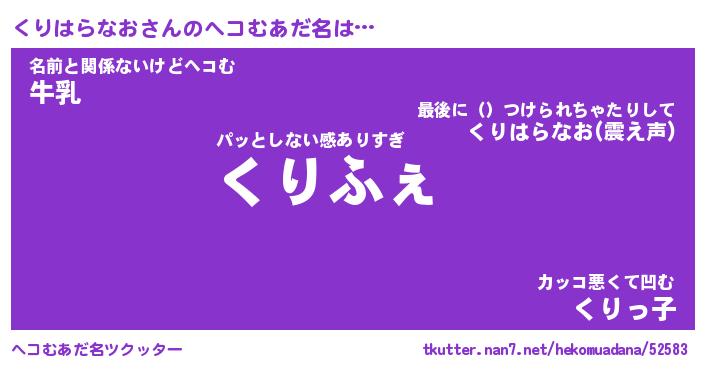 | ヒーロー風カッコイイあだ名 | 『スーパークリハラナオ』『幻影騎士クリ』 |