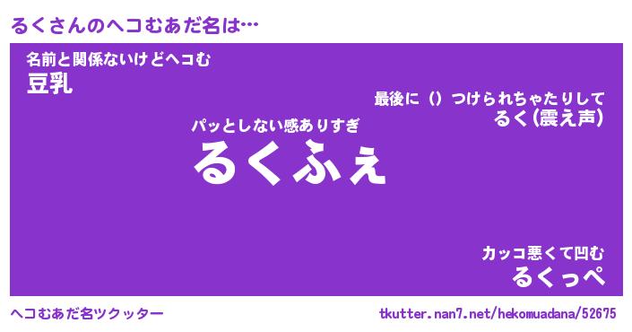 | 意味不明あだ名 | 『ペロリンるく』『るくフォーエバー』 |
