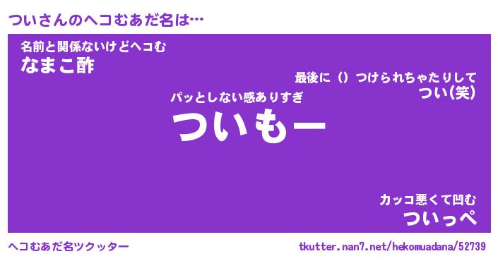 | ポケモン風あだ名 | 『ツイチュウ』『ツイダネ』『ヒツイ』 |