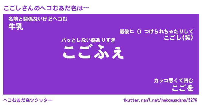 | ポケモン風あだ名 | 『コゴチュウ』『コゴシダネ』 |