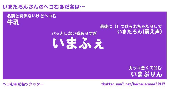 | 意味不明あだ名 | 『ペロリンいまたろん』 |