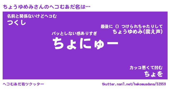 | ヒーロー風カッコイイあだ名 | 『スーパーチョウユメミ』『炎刃騎士チョ』 |