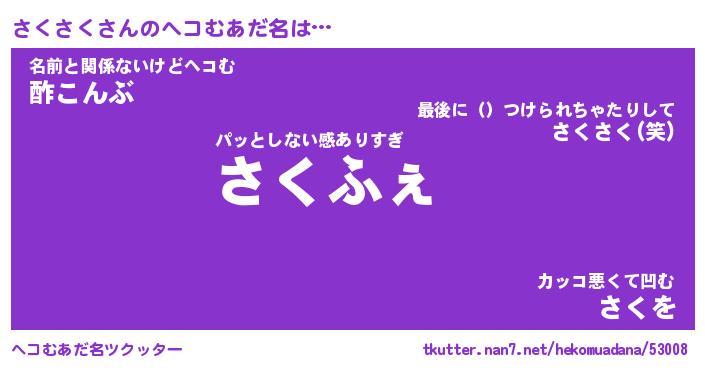| 意味不明あだ名 | 『ペロリンさくさく』『永久保存さくさく』 |