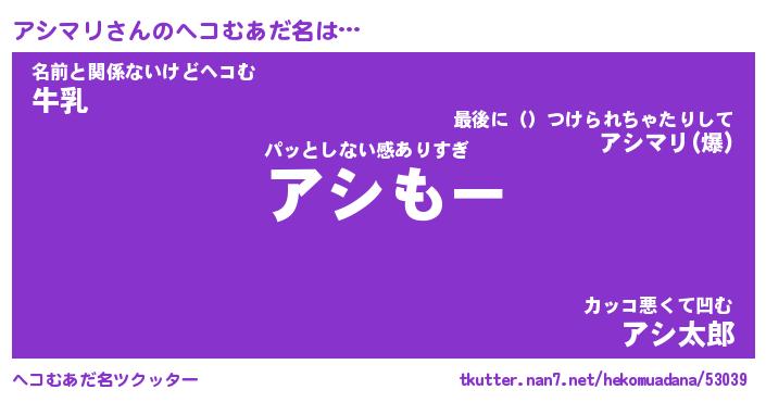| ファンタジー風あだ名 | 『アシフェル』『エターナルアシマリー』 |