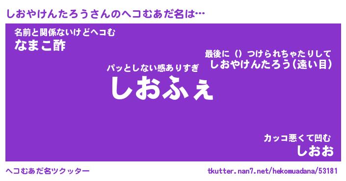 | 男性向けラノベタイトル風あだ名 | 『しおやけんたろうの憂鬱』 |