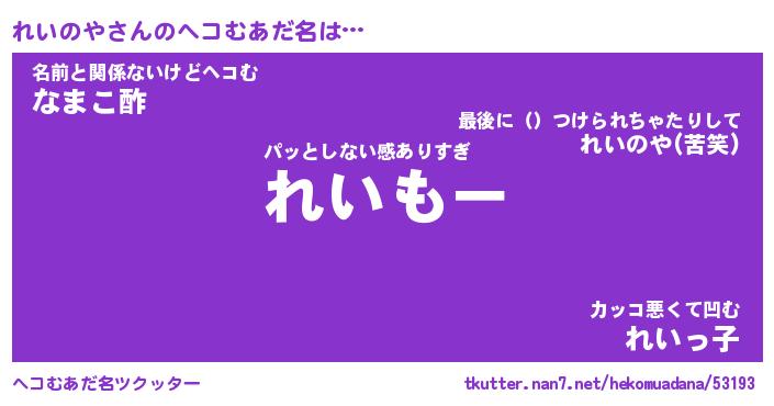| 欧米人風あだ名 | 『マイケルれいのや』『ウサインれいのや』 |