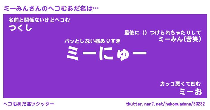 | ファンタジー風あだ名 | 『ミーフェル』『エターナルミーミンー』 |