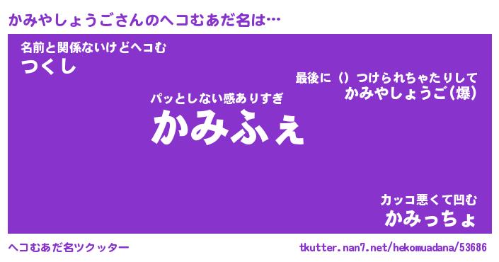 | 意味不明あだ名 | 『ペロリンかみやしょうご』 |