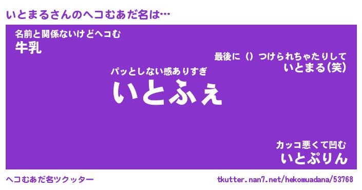 | 意味不明あだ名 | 『ペロリンいとまる』『永久保存いとまる』 |