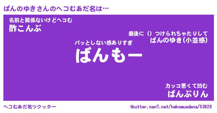 | ファンタジー風あだ名 | 『バンフェル』『エターナルバンノユキー』 |