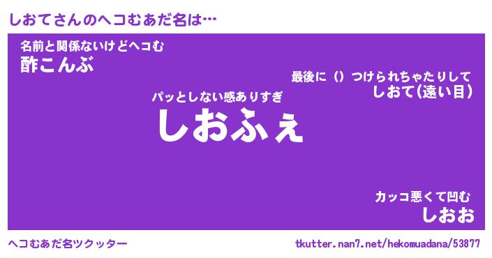 | 意味不明あだ名 | 『ペロリンしおて』『しおてフォーエバー』 |