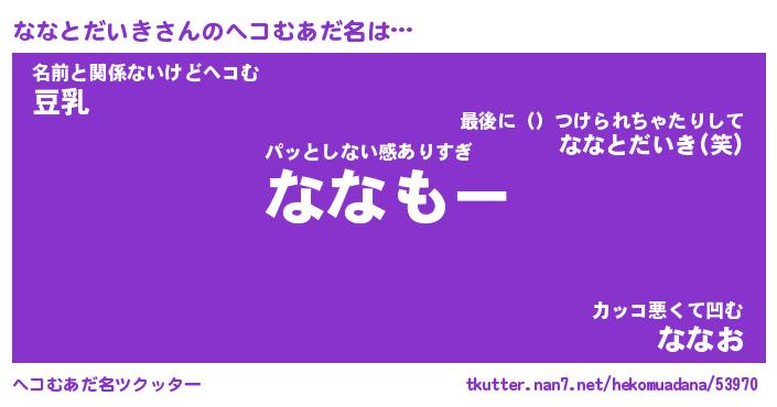 | 恥ずかしいあだ名 | 『プリティーななとだいき』『ななっちょ』 |