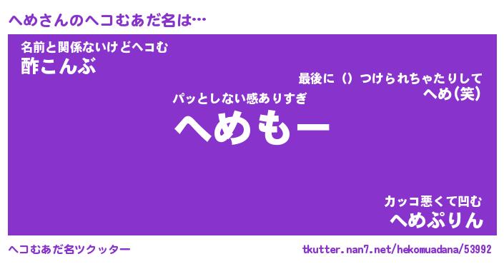 | ポケモン風あだ名 | 『ヘメチュウ』『ヘメダネ』『ヒヘメ』 |
