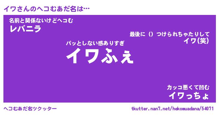 | ポケモン風あだ名 | 『イワチュウ』『イワダネ』『ヒイワ』 |
