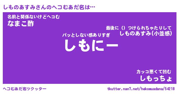 | ヒーロー風カッコイイあだ名 | 『スーパーシモノアスミ』『魔戒騎士シモ』 |