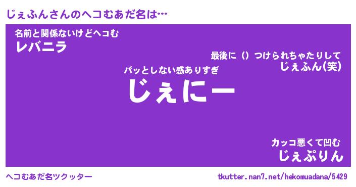 | 意味不明あだ名 | 『ペロリンじぇふん』『永久保存じぇふん』 |