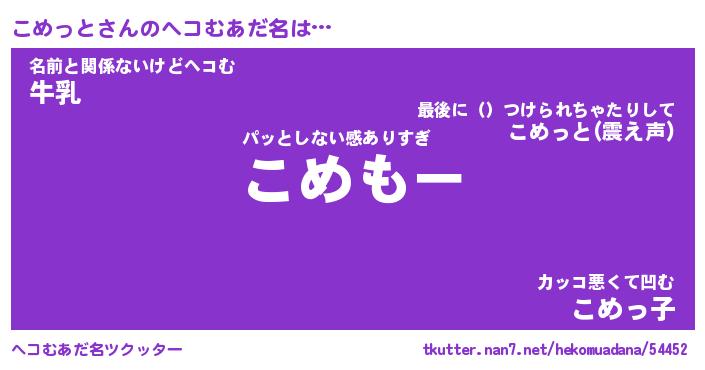 | 意味不明あだ名 | 『ペロリンこめっと』『永久保存こめっと』 |