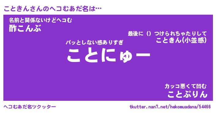 | 意味不明あだ名 | 『ペロリンこときん』『永久保存こときん』 |