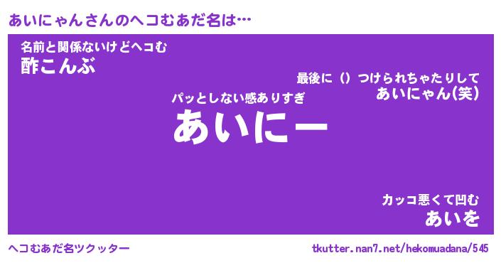 | 欧米人風あだ名 | 『マイケルあいにゃん』 |