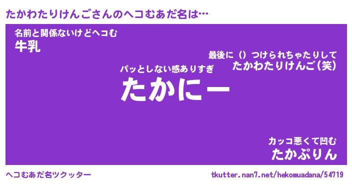 | ポケモン風あだ名 | 『タカチュウ』『タカワダネ』 |