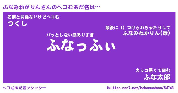 | 男性向けラノベタイトル風あだ名 | 『ふなみねかりんの憂鬱』 |