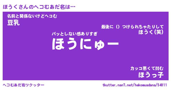 | ファンタジー風あだ名 | 『ホウフェル』『エターナルホウクー』 |