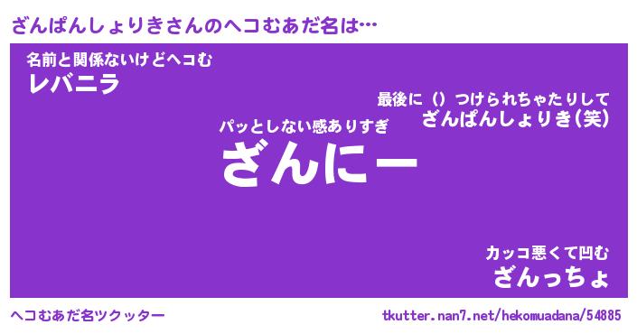 | 男性向けラノベタイトル風あだ名 | 『ざんぱんしょりきの憂鬱』 |
