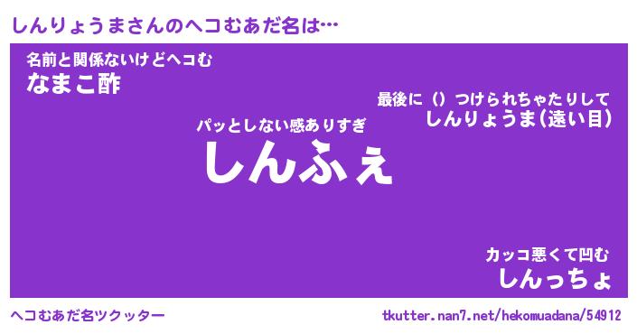 | 意味不明あだ名 | 『ペロリンしんりょうま』 |
